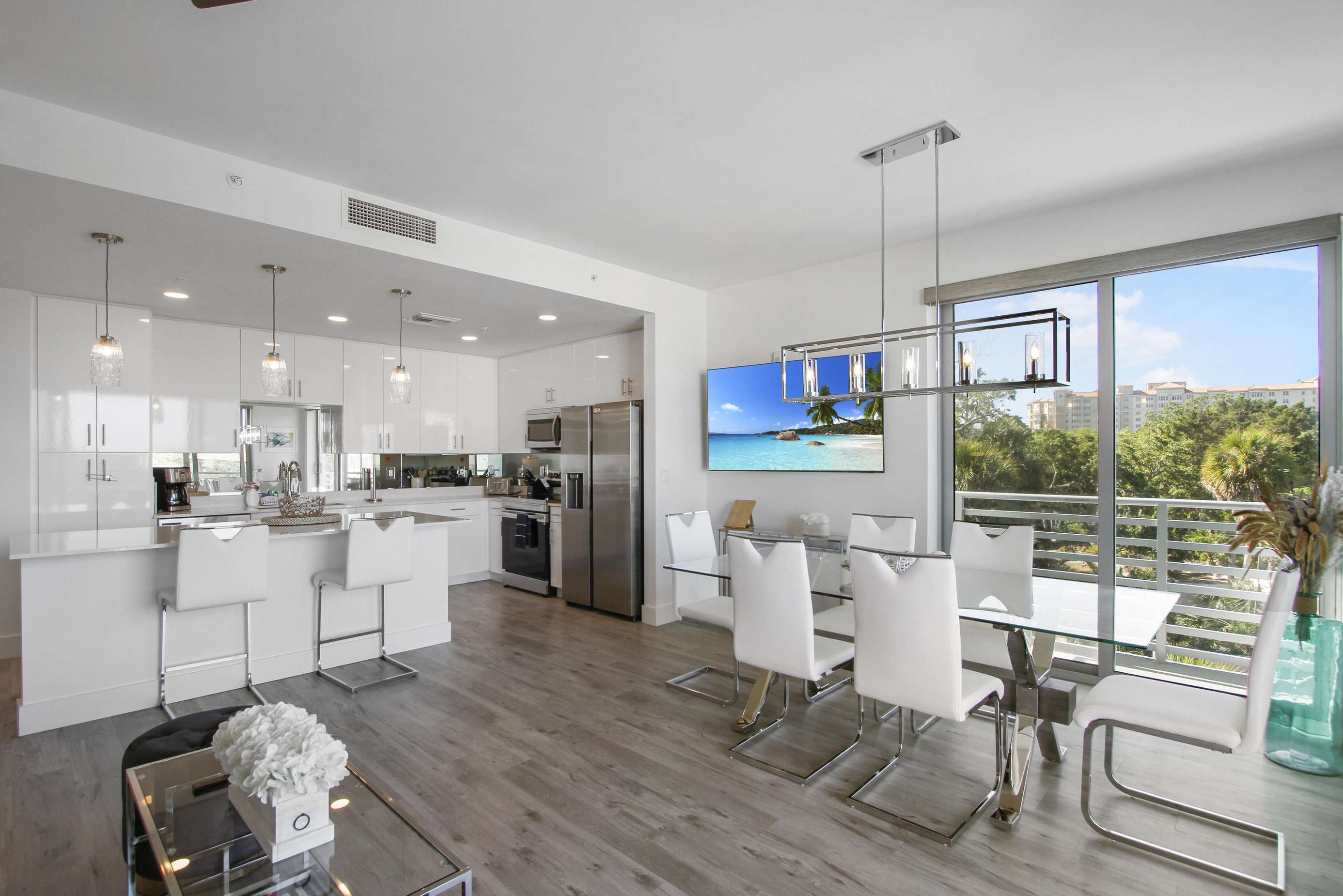 This condo was exactly what we were looking for. It was like we were home but not in cold Chicago but sunny Sarasota!! Extremely clean and elegant for a fair price. Loved the pool, gym and location to beautiful beaches and restaurants. Rented jet skis from sunworld which was 5 minutes away( highly recommend) great people to work with. Management company was extremely helpful