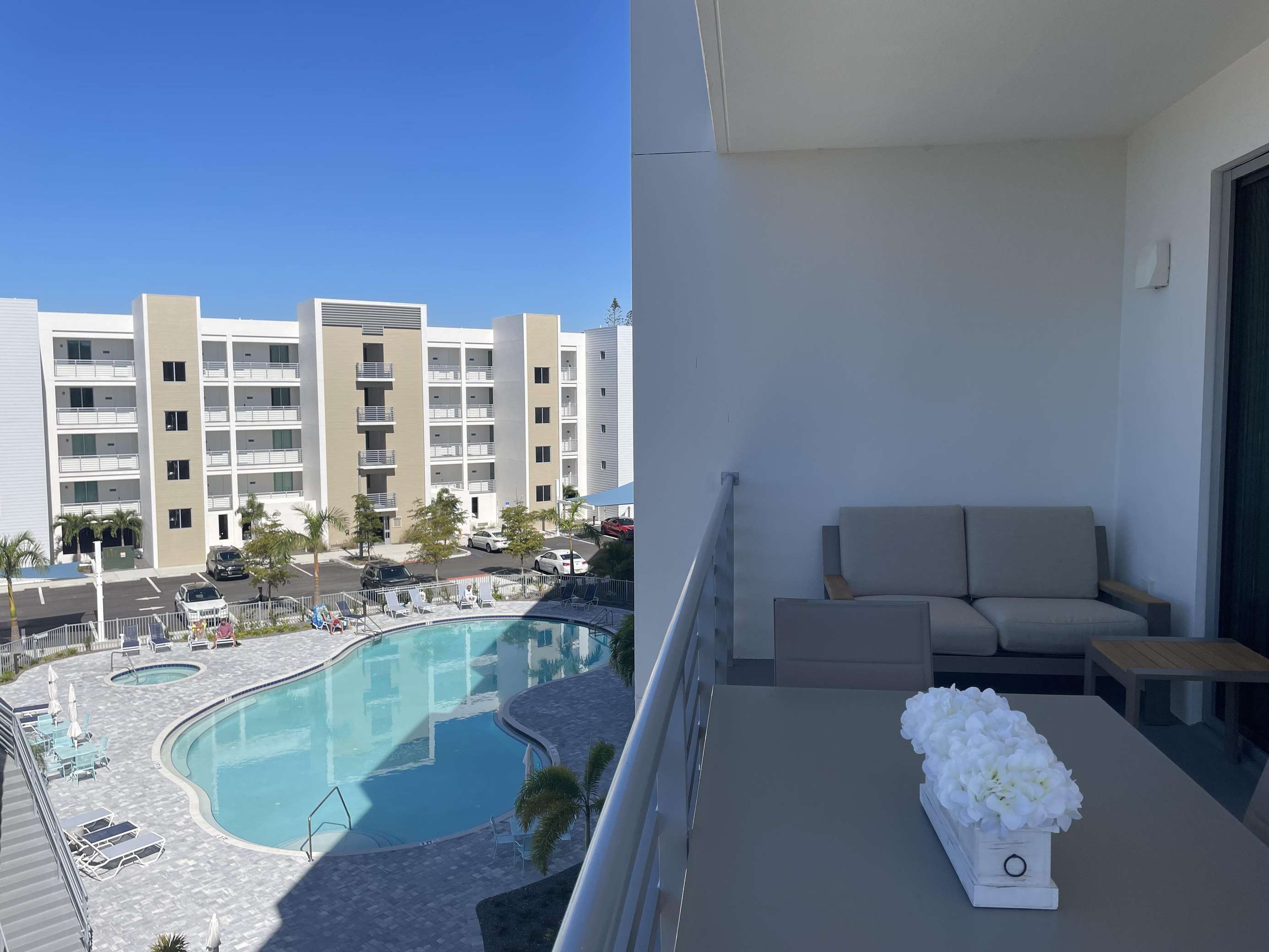 Place is beautifully decorated and great location if you don’t mind driving to beach. Pool area was nice which worked out great since we were there during Debbie overall nice experience.