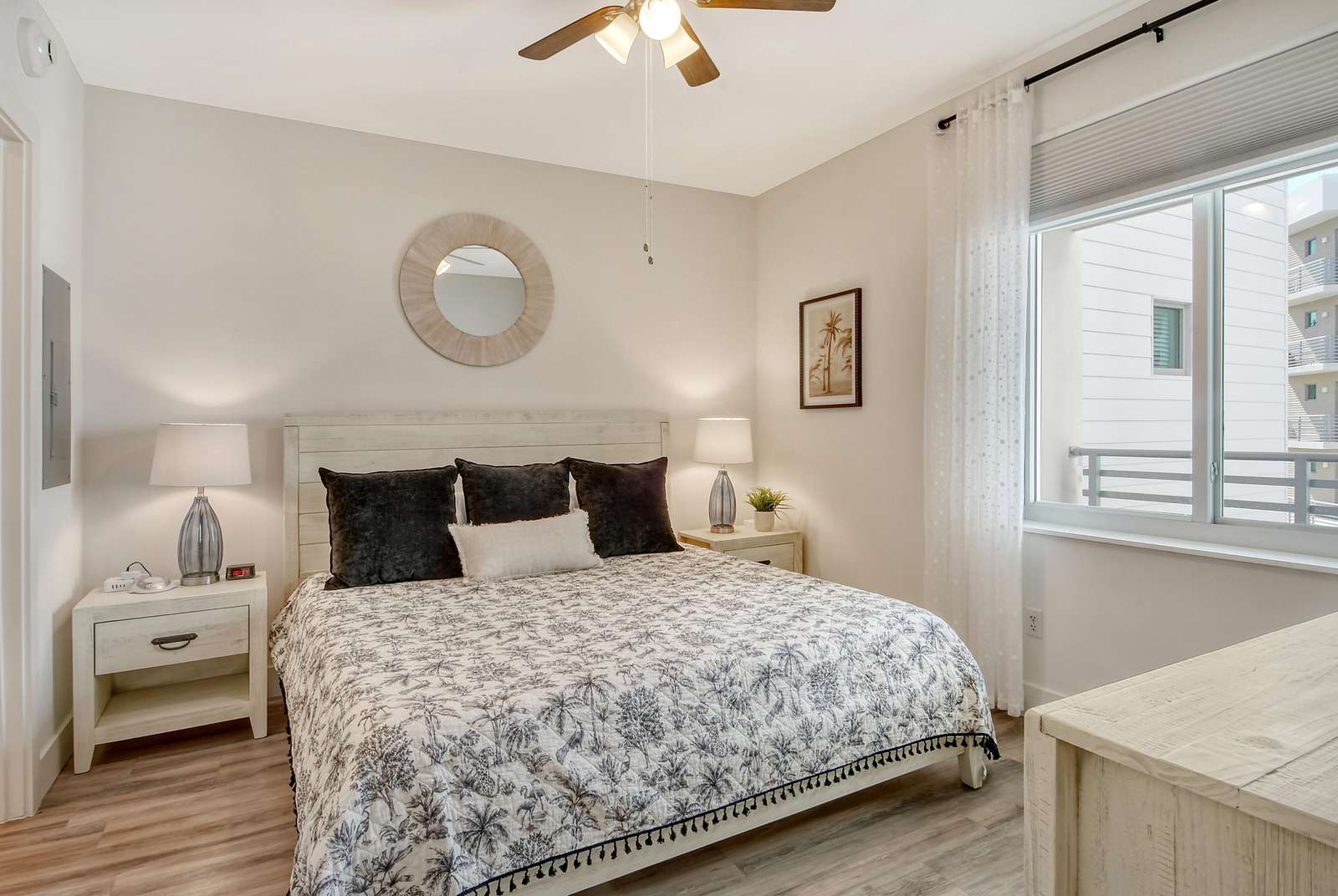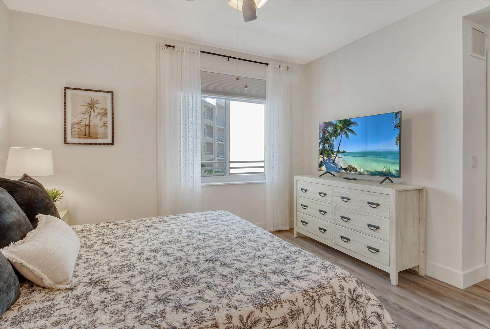 Located on the right-hand side upon entering the condo, it includes a king sized bed, a closet, dresser and two nightstands with lighting. Bedding & linens are included.